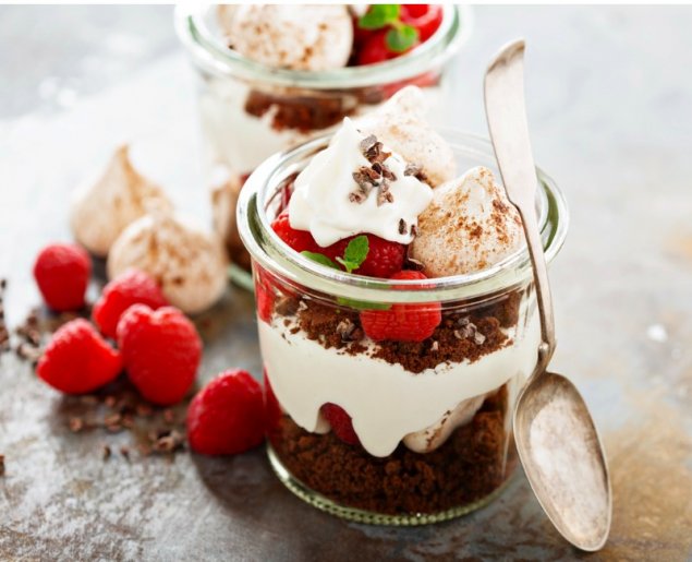 €5.00Apfelkompott, darauf eine leichte Vanillecreme mit knusprigen Streuseln mit Zimtzucker.